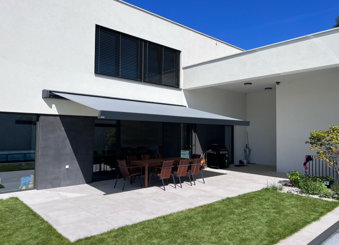 La combinazione di colori di una tenda da sole design - composta da colore del telaio, telo tenda da sole e colore mascherine - influisce notevolmente sull'aspetto e sull'effetto visivo. Questa triade di colori è in armonia con le linee chiare e il design funzionale. Con gli otto nuovi colori mascherine per quattro modelli di tenda da sole selezionati, markilux sistematizza la configurazione di queste tende da sole. Dal classico-chic al fashion-elegante, c'è un'ampia gamma di opzioni per personalizzare la tenda da sole dei vostri sogni.