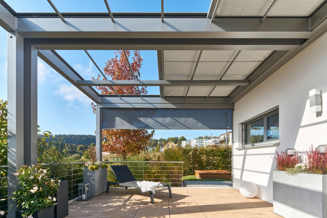 MARKILUX MARKANT è il complemento ideale per gli spazi esterni più raffinati. La risposta perfetta al desiderio di trascorrere tutto il tempo possibile all'aperto senza rinunciare alla protezione dalle intemperie, al confort e ad un'atmosfera rilassante. Un piacere di vivere ottimale sulla terrazza e nel giardino in tutte le stagioni, con sole o pioggia. In poche parole; una grande aggiunta alla qualità della vita, alla quale è possibile installare una illuminazione a LED perfetta sino ad arrivare al radiatore termico. L'acqua piovana defluisce attraverso aperture circolari predisposte e viene deviata attraverso i robusti montanti. Praticamente una stanza aggiuntiva al vostro spazio esterno, che è stata insignita dell'ICONIC AWARDS - INNOVATIVE ARCHITECTURE per l'architettura visionaria e la comunicazione sostenibile di questo prodotto.