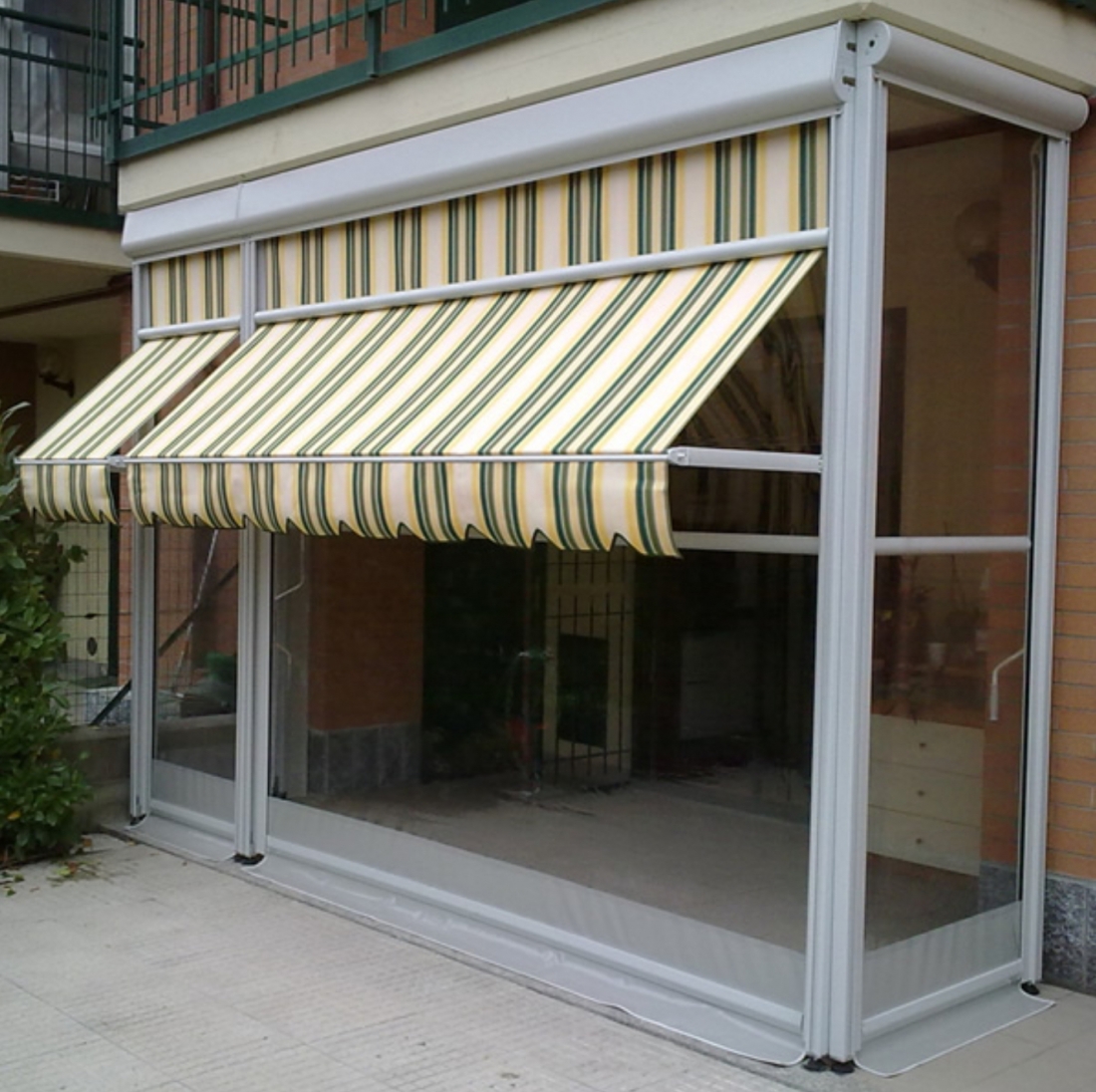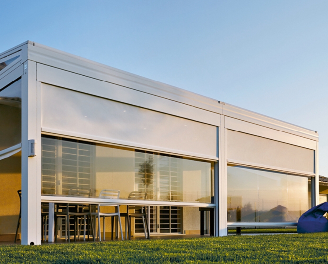 Tenda veranda doppio rullo estate inverno. Ideale per proteggere il tuo balcone dal sole, dal vento e dalla pioggia. La tenda veranda è un sistema pratico, semplice ed economico per verandare spazi e riparare il tuo balcone dal sole, dal vento e dalla pioggia con coperture retraibile. Per l'installazione non servono autorizzazioni o permessi comunali, non ci sono tasse da pagare e non aumenta la cubatura della casa. La tenda veranda GRANDINETTI è progettata per essere utilizzata 12 mesi all'anno in qualsiasi condizione atmosferica. Riduce il calore in estate come una perfetta tenda da sole, attenua il freddo d'inverno come una veranda in vetro e potrai ottenere un recupero termico fino a 10 gradi con un notevole risparmio energetico. Ripara dalla pioggia, dal sole e dal vento tutto l'anno. E'caratterizzata da due teli completamente indipendenti l'uno dall'altro, con movimentazione manuale o motorizzata Non necessita di manutenzione e i teli possono essere facilmente liberati dalle guide per una pratica pulizia. Il telo invernale i retinato antingiallimento, PVC o PVC cristal trasparente scorre all’interno di grandi guide in alluminio dotate di spazzolini per una chiusura ermetica; l'aggancio della tenda per bloccare il telo ed ottenere una perfetta trazione è automatico tramite due scrocchetti poi permettono di bloccare il telo ad altezze differenti. Il telo estivo è dotato di braccetti con molla in trazione con catena in acciaio inox con possibilità di uso fino a pavimento e nella senza dover sganciare il terminale dai braccetti. Il cassonetto copritelo solo esterno o totale (fornito in optional) dalla linea elegante ed essenziale garantisce la pulizia e la durata dei tessuti e riduce tutte le infiltrazioni di aria e acqua.