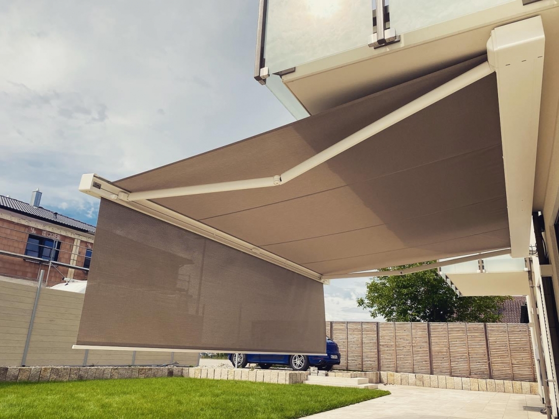 Eleganza urbana unita a comfort tecnico. Ecco cosa promette la markilux 970. La tenda da sole a cassonetto convince per il suo design purista e angolare, perfetto in ogni dettaglio. L'intramontabile gamma di colori sorprende con gli accenti forti del profilo frontale un gioco di colori basato sul contrasto, che anima ogni facciata. La tenda sorprende anche per la tecnica. Durante l'apertura, un giunto orientabile inclina la tenda su un angolo preimpostato e il tendine bionico integrato nei bracci rende la tenda robusta e silenziosa. I faretti LED possono essere fissati al cassonetto tramite una scanalatura multifunzione e garantiscono un'atmosfera unica per le vostre piacevoli serate in terrazza. La markilux 970, disponibile in via opzionale anche verniciata a polvere, è adatta per il fissaggio a parete, a soffitto e a falso punzone. La tecnica Cassonetto compatto con altezza costruttiva di 140 mm e profondità di 260 mm. Equipaggiata di serie con il robusto tendine bionico. Giunto orientabile per angolo d'inclinazione preimpostato e deflusso ottimale dell'acqua piovana a partire da 14 gradi d'inclinazione. I teli Tutti i disegni dell'attuale collezione markilux collection sono disponibili in sunvas snc/sunsilk snc/ visutex L'atmosfera Dotazione speciale intelligente per il massimo comfort: telecomando markilux, sensori sole e vento con tecnica a sensori. 6 intramontabili colori lounge e standard per cassonetto e profilo frontale, combinabili a piacere con 6 vivaci tonalità moderne. Le dimensioni Massima larghezza: 600 cm Massima sporgenza: 350 cm L'azionamento Azionamento manuale con asta di manovra in acciaio inox. Motore elettrico o motore radiocomandato e telecomando markilux opzionali.