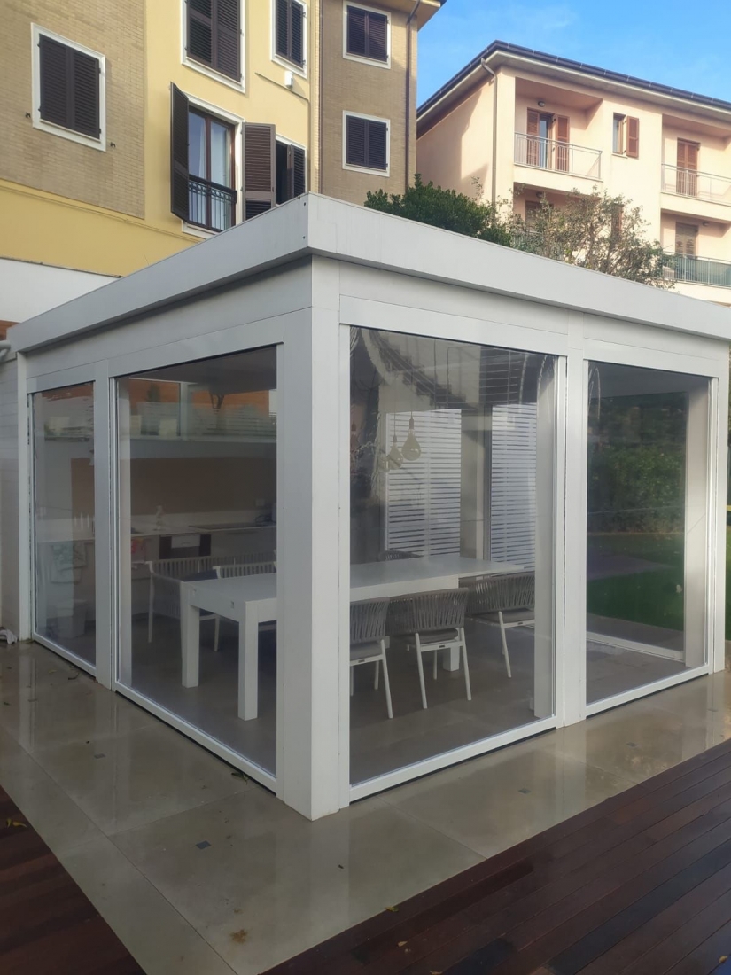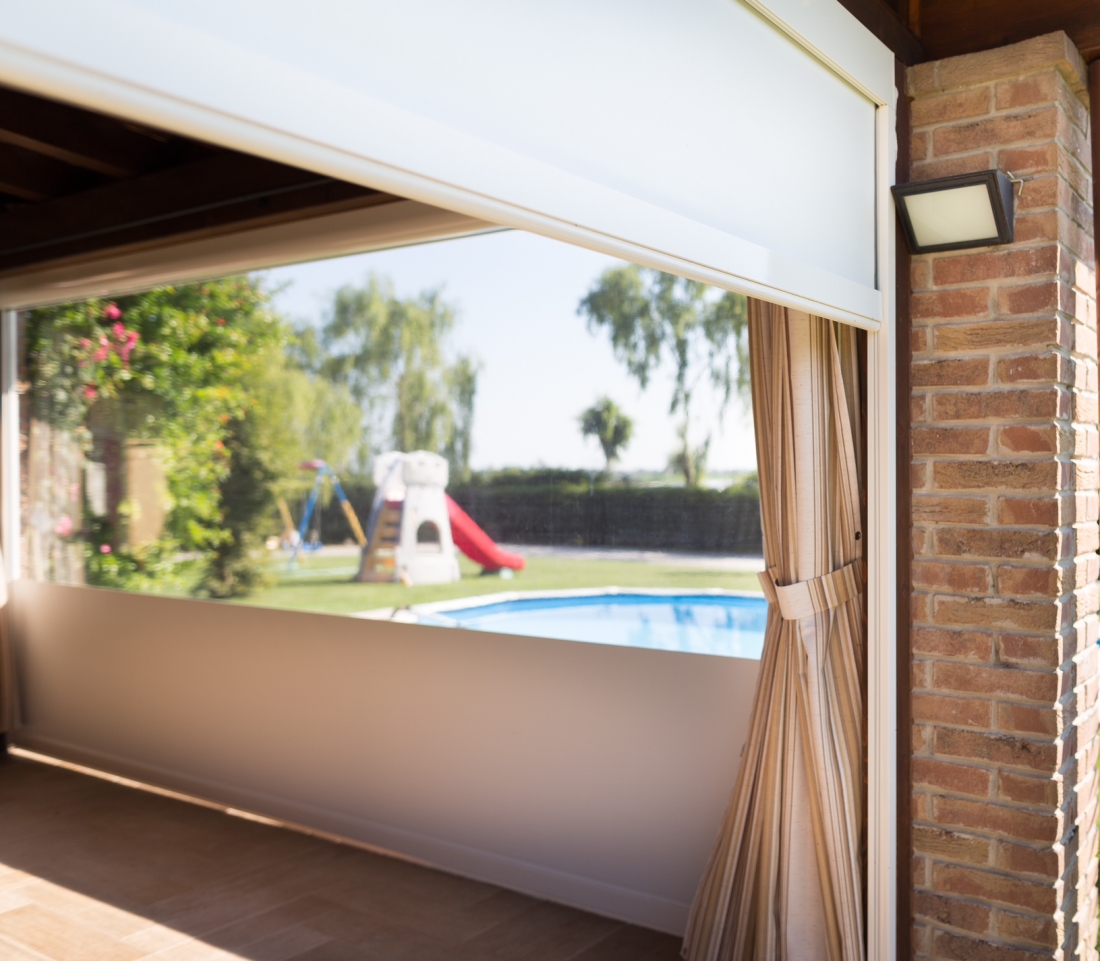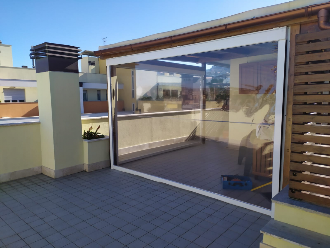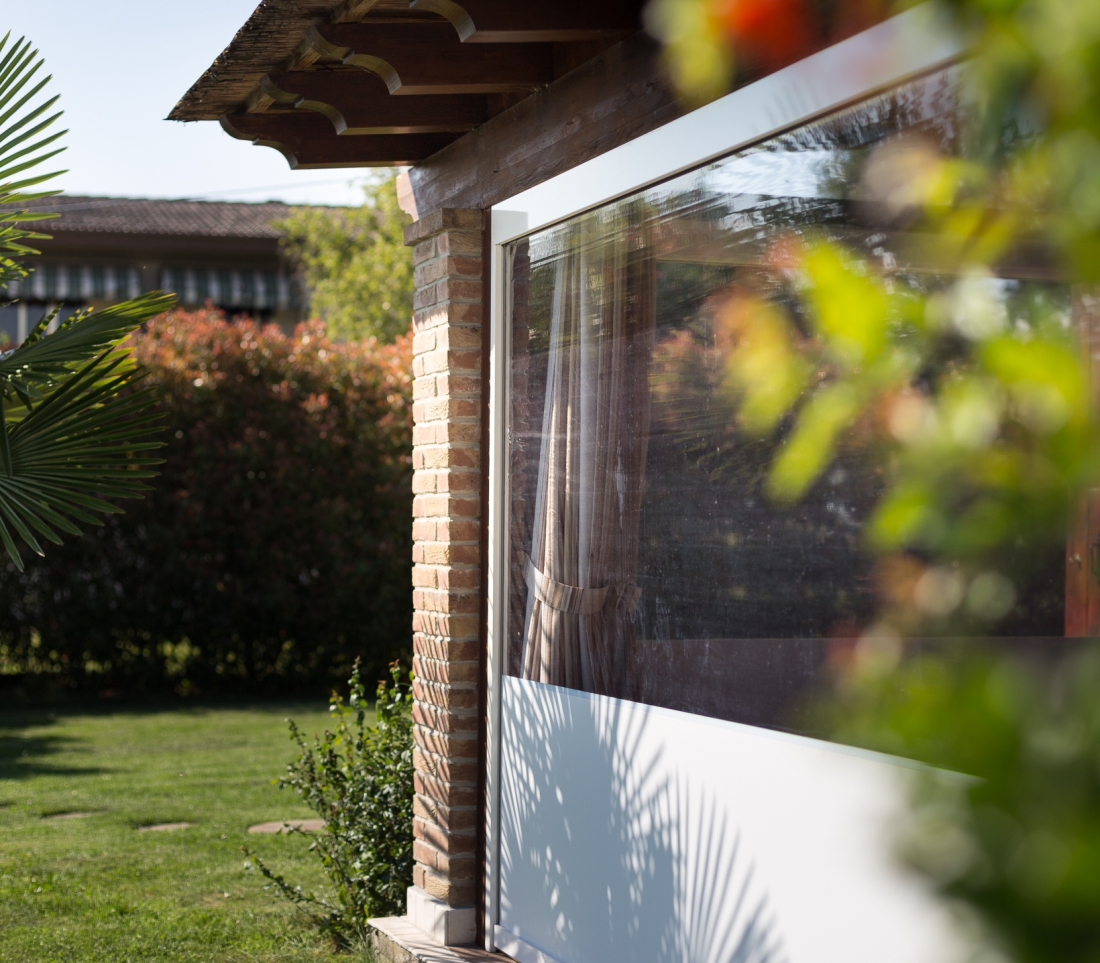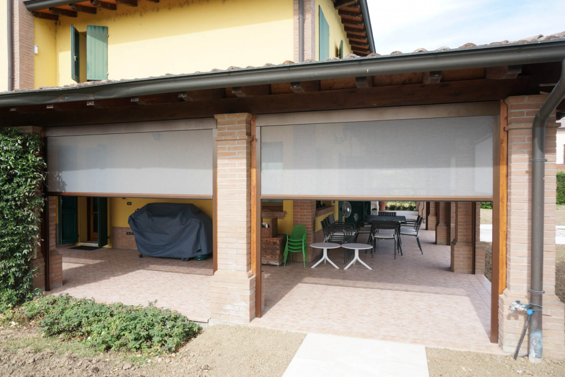 Panarea Zip è una tenda a caduta verticale senza traversine orizzontale diversamente dal modello Ponza . Nella tenda ZIP il sistema di tenuta del telo laterale avviene tramite cerniera che consente al telo di rimanere nelle guide senza subire movimenti, e l’ancoraggio a terra manuale permettono di avere un telo ben teso e di avere un’ottima tenuta in condizioni di vento e di pioggia. Le saldature orizzontali garantiscono un perfetto avvolgimento e funzionamento. La movimentazione del telo è ad argano o con motore.La tenda zip e’ valorizzata dal cassonetto che consente di proteggere il telo quando avvolto