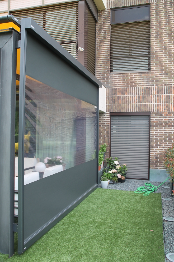 Tenda verticale Markilux 620, tenda a cassonetto con sistema Tracfix senza fessure fra telo e guide, particolarmente resistente al vento. Protegge da sole, vento e sguardi indiscreti. Cassonetto di soli 95 mm di profondità e 110 di altezza. Il modello 625 ha cassonetto 125mm in profondità e 135mm in altezza. Il telo all'interno delle guide rimane teso riducendo i rumori in caso di vento. Guide fissate direttamente al telaio o sulla spalletta della finestra. Il telo rimane avvolto all'interno del cassonetto completamente chiuso, protetto dallo sporco e dagli agenti atmosferici. Comando standard ad azionamento a motore. Il modello 620 raggiunge dimensioni max (LxH) 400x300cm oppure 300x400cm Il modello 625 raggiunge dimensioni max (LxH) 600x350cm oppure 550x400cm