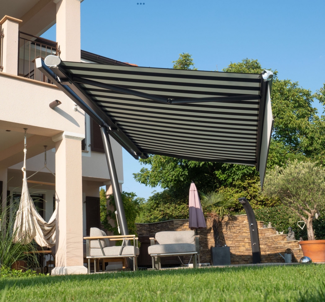 MARKILUX PLANET", la tenda che si muove con il sole. Originale nel look ed elegante nel design; queste caratteristiche rendono Markilux Planet un elemento di arredo per ogni giardino o ambiente esterno di hotel e ristoranti. Come un pianeta in orbita intorno al sole, il modello PLANET FLEX è orientabile fino a 335 gradi. Grazie al meccanismo di rotazione a leva "Easy Go" la regolazione è molto semplice. Attraverso numerose e pratiche dotazioni speciali, come il motore radiocomandato con trasmettitore manuale markilux, dà libero spazio all'esterno e alla fantasia di chi ama l'originalità. L’innovativa tenda ombrellone attrae nelle due versioni disponibili: nel modello fisso “Markilux Planet Fix” o, in via opzionale, nel modello “Markilux Planet Flex”. I colori lounge sono disponibili senza sovrapprezzo; i rivestimenti verniciati a polvere per materiale plastico sono disponibili in altri colori speciali. La classe di resistenza al vento corrisponde a quella scelta per la tenda da sole a bracci estensibili. Per il montaggio di markilux planet, sono necessarie fondamenta in cemento armato. Per la scelta del telo sono disponibili tutti i tessuti in poliestere Markilux SUNSILK o SUNVAS, autopulenti in presenza di pioggia.