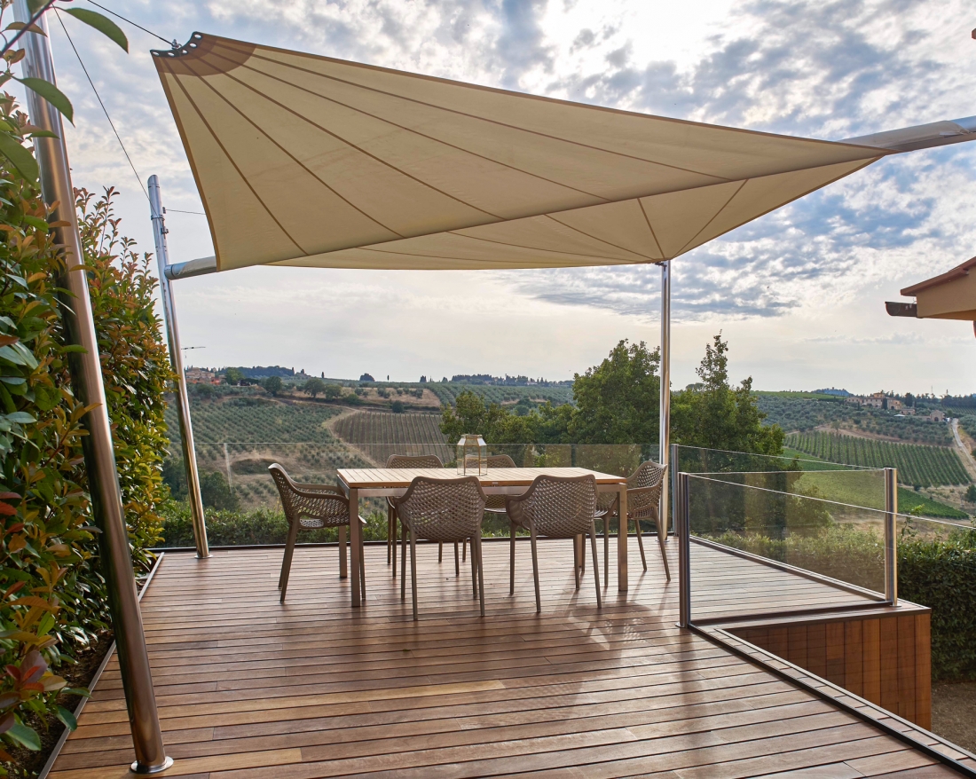 KHEOPE è un sistema ombreggiante di vela con Bomautoportante. Tale vela ombreggiante fissa di ampie dimensioni appartiene alla gamma SAILS. Struttura che esprime modernità ed assicura un'importante zona d'ombra, rapprendentando contemporaneamente una scelta innovativa per le coperture di domani. L'acciaio della struttura ed i materiali della vela fanno sì che la funzionalità sia assoluta ed il design leggero, moderno ed essenziale. Kheope offre inoltre un'alta resistenza agli agenti atmosferici e salsedine, con possibilità di chiusura automatica tramite sensore vento. Il movimento, rapido e diretto, è garantito dai cursori.