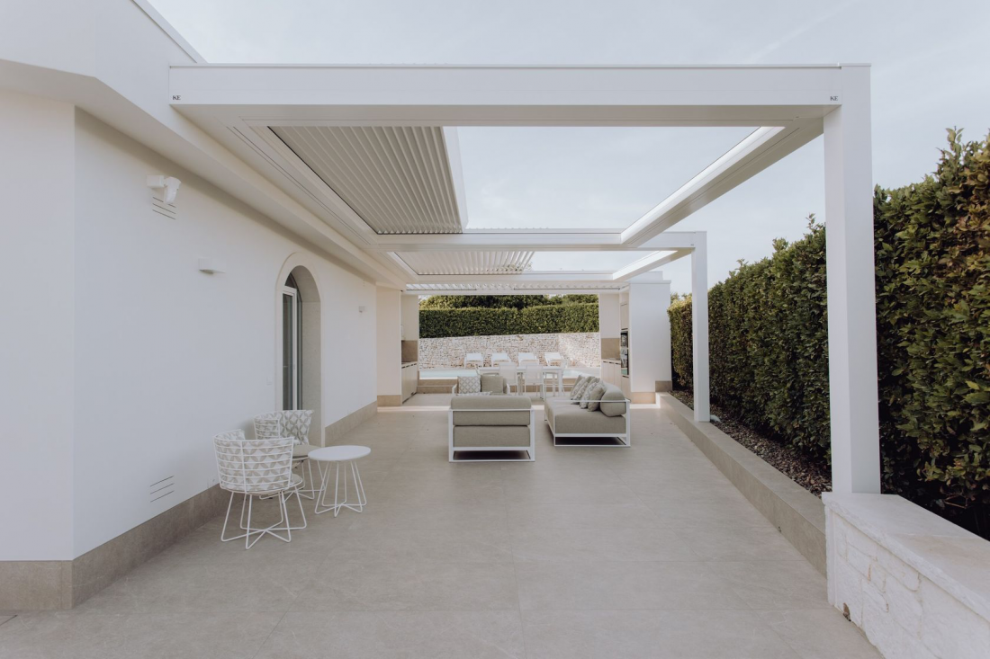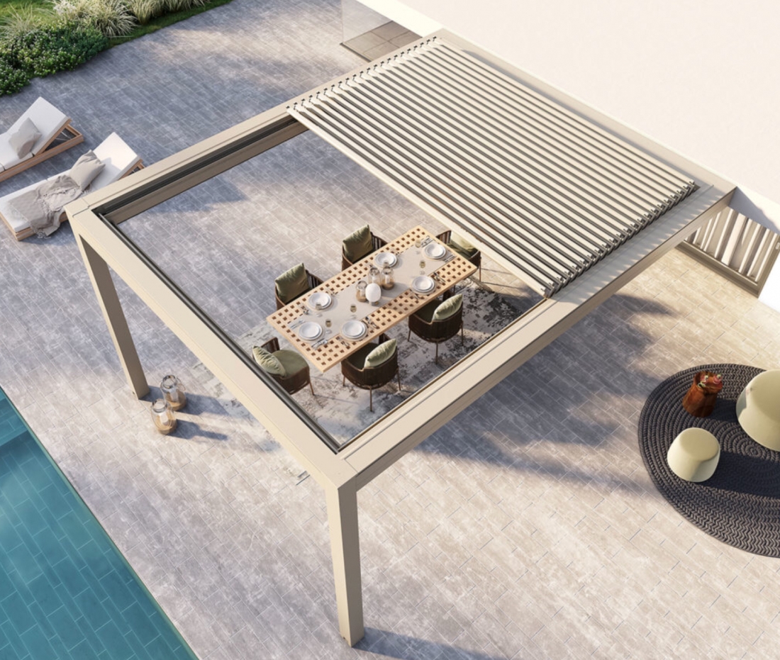 Cabrio è la principale novità nel mondo delle pergole bioclimatiche. La novità principale di questo modello consiste nel tetto a lame mobili retrattili e orientabili. Struttura in alluminio composta da una trave portante perimetrale e relative grondaie applicate che consentono il deflusso dell'acqua. La movimentazione avviene mediante l'utilizzo di motori tubolari. Rotazione delle lame fino a 140 gradi. Pluviali e gronda integrati lungo tutto il perimetro della struttura per consentire il l'espulsione delle acqua piovane a terra tramite i montanti. Struttura modulare senza alcun limite di misura in larghezza e profondità, con un'estetica "pulita" senza viti a vista. Progetto e realizzazione Made in Italy. Completamente richiudibile perimetralmente con vetrate panoramiche scorrevoli o tende a caduta, fino a 3 installazioni per lato. Disponibile in molteplici combinazioni di colori e con diverse configurazioni e optional. mediato. Grazie alle attuali normative è possibile usufruire dell'ecobonus 50%.