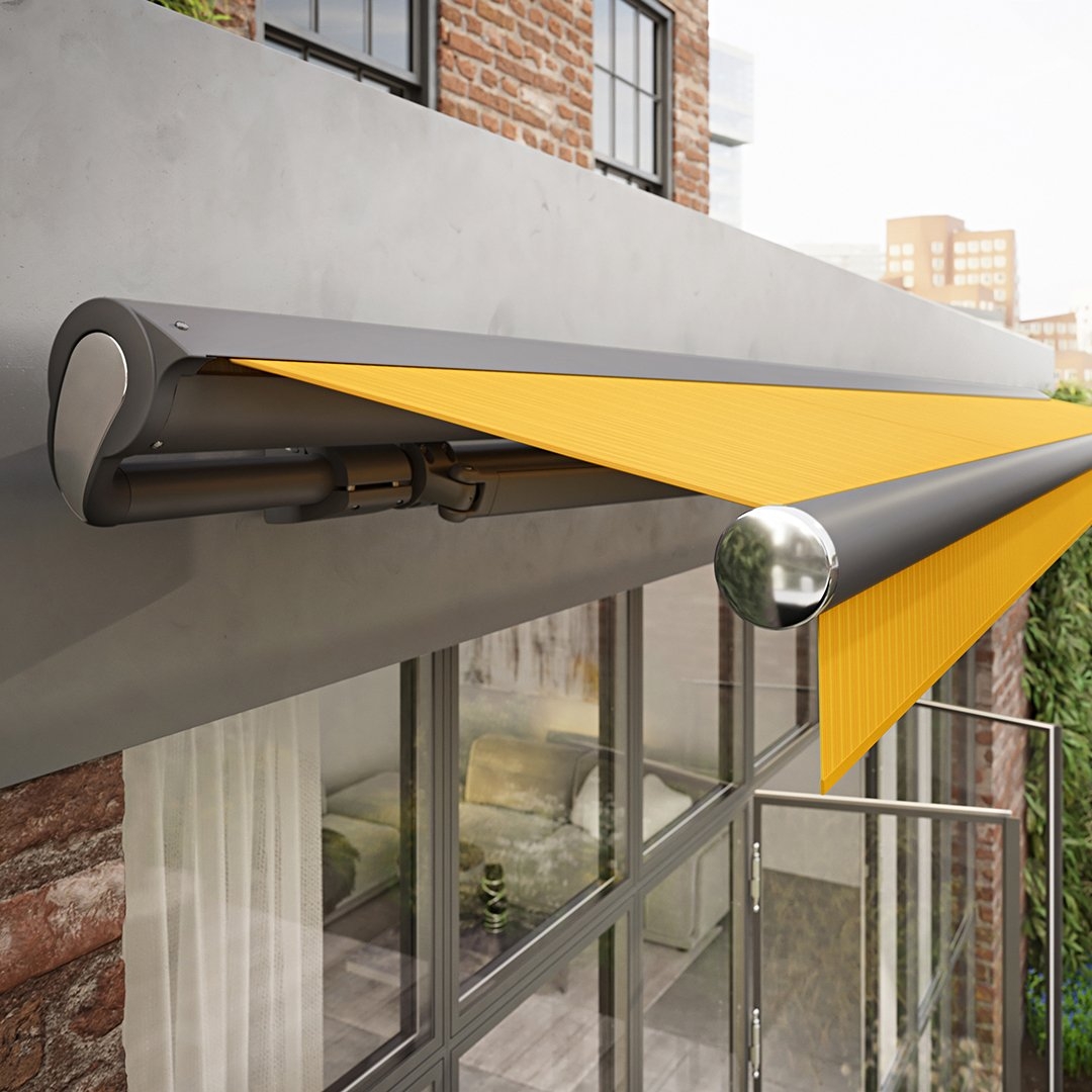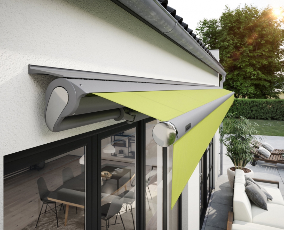 La Markilux 1710 deve la sua leggerezza all'elegante cassonetto a forma di goccia. In caso di pioggia, il cassonetto protegge perfettamente la tenda; quando la tenda è aperta, il canale di scolo del profilo frontale scarica l'acqua lateralmente. Grazie al telo robusto, la Markilux 1710, anche nella misura più grande, risulta perfettamente stabile e l'avvolgimento del telo è impeccabile. Passaggio elegante e omogeneo dalla barra rotonda al rullo avvolgitore, a sua volta rotondo. Combinazioni cromatiche con i coperchi laterali cromate per porre accenti ottici. Elegante profilo frontale in alluminio estruso con canale di scolo e deflusso dell’acqua laterale. Barra portante in acciaio, rotondo e stabile, 50 mm diametro, resistente a torsione e flessione. Il tubo avvolgitore con 85 mm di diametro garantisce anche alle grandi larghezze una buona tensione e un ottimo avvolgimento del telo. Grazie alla struttura particolarmente stabile la tenda può ombreggiare anche superfici ampie. Grazie a una straordinaria tecnologia dei bracci, l’energia viene trasmessa attraverso il tendine bionico resistente all’usura prodotto con fibre high-tech, testato presso l’Istituto Fraunhofer Una particolare tecnica dei bracci estensibili fa sì che la Markilux 1710 "STRETCH" possa avere una sporgenza maggiore della larghezza. Cosa volete di più?