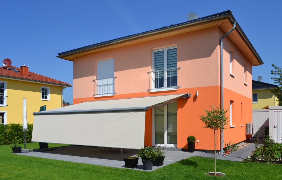 La tenda dai mille volti, funzionale e poliedrica. La Markilux 6000 è l'emblema della innovazione nelle coperture solari. Questa tenda da sole moderna cassonata è dotata di una tecnologia futuristica nei giunti centrali dei bracci della tenda da sole, i cosiddetti "tendini bionici". Questo innovativo tendine bionico sviluppato da markilux garantisce una piegatura dei bracci estensibili silenziosa e priva di problemi, basata sul modello della natura. Oltre alle possibilità di poter personalizzare in ogni aspetto la markilux 6000 offre un'ulteriore particolarità. Il tessuto garantisce un aspetto sempre pulito, grazie ad un effetto di rimozione della sporcizia in presenza della pioggia. La markilux 6000 è disponibile con una larghezza massima di 700 cm. La relativa sporgenza massima è di 400 cm. È possibile ottenere un ulteriore tocco di personalità con le chiusure laterali e i bordi in tinta col cassonetto. Il cassonetto e il telaio sono verniciati a polveri nello stile Lounge, mentre il profilo copritelo è in tinta con il cassonetto assicurando alla tenda, anche aperta, uno stile omogeneo. Profilo frontale con canale di scolo integrato e sistemi di raccolta d’acqua a scomparsa. Sistema d’illuminazione a faretti LED regolabili, opzionale – per creare la giusta atmosfera. Motore silentec opzionale – per un azionamento particolarmente silenzioso. Markilux 6000 è la tenda da sole moderna di design.