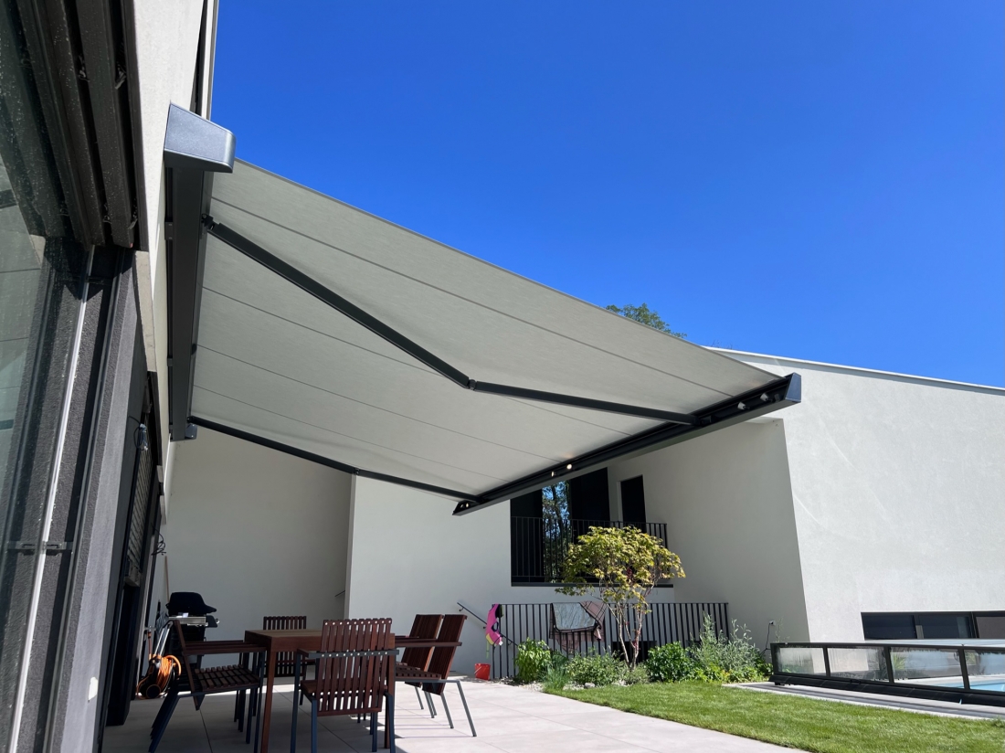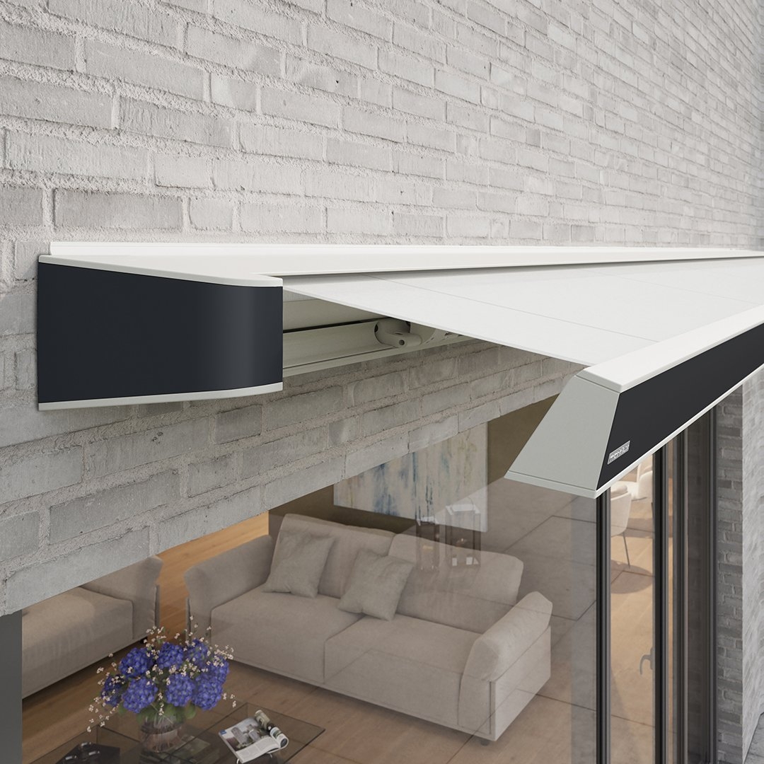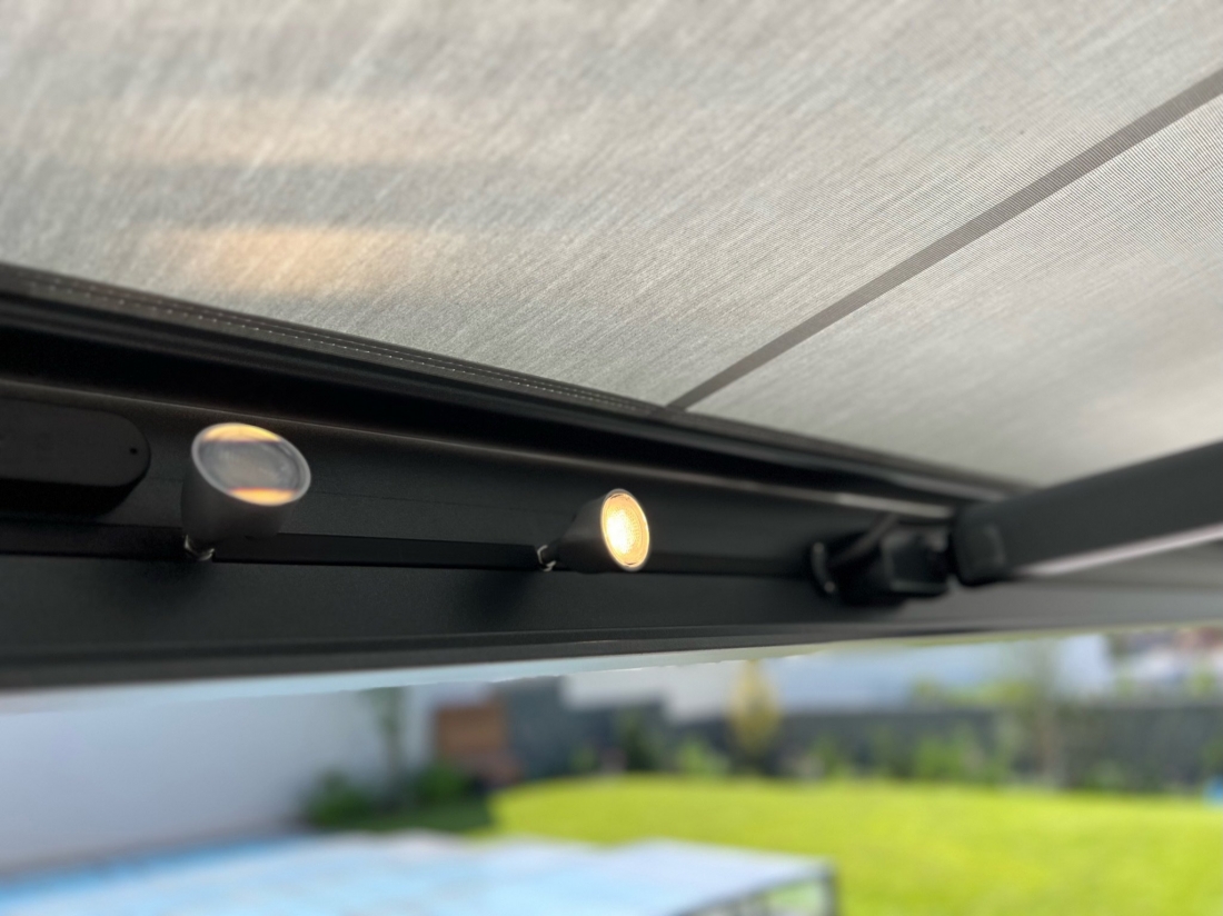 Pensata per l'ombreggiatura di grandi superfici, convince per il suo design all'avanguardia e per il profilo della mascherina che la circonda. Design del prodotto - esteticamente bello e funzionale. Con le sue innovative opzioni di illuminazione e le luci a parete aggiuntive, risplende nelle ore serali, creando un'atmosfera di illuminazione spettacolare e magica. Sipario per una grande composizione.
