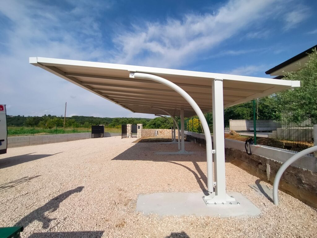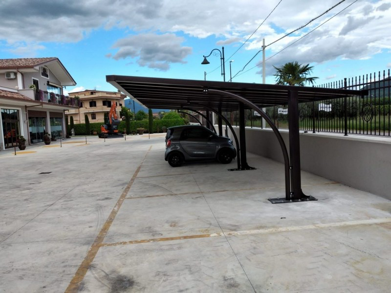 La Linea Parking è progettata per il parcheggio dell’auto e realizzata con cura affinché vi sia un’elevata capacità di adattamento ad ogni contesto architettonico e, al contempo, alla richiesta di protezione e sicurezza. In particolar modo il Parking grazie alla struttura a sbalzo con piantoni decentrati consentono le operazioni di manovra in piena sicurezza. Inoltre, sono dotate di gronda integrata, che consente lo scarico diretto dell’acqua piovana nei piantoni. Le strutture della Linea Parking sono in acciaio zincato a caldo e le verniciature sono alle polveri epossidiche ed il telo in pvc ignifugo.
