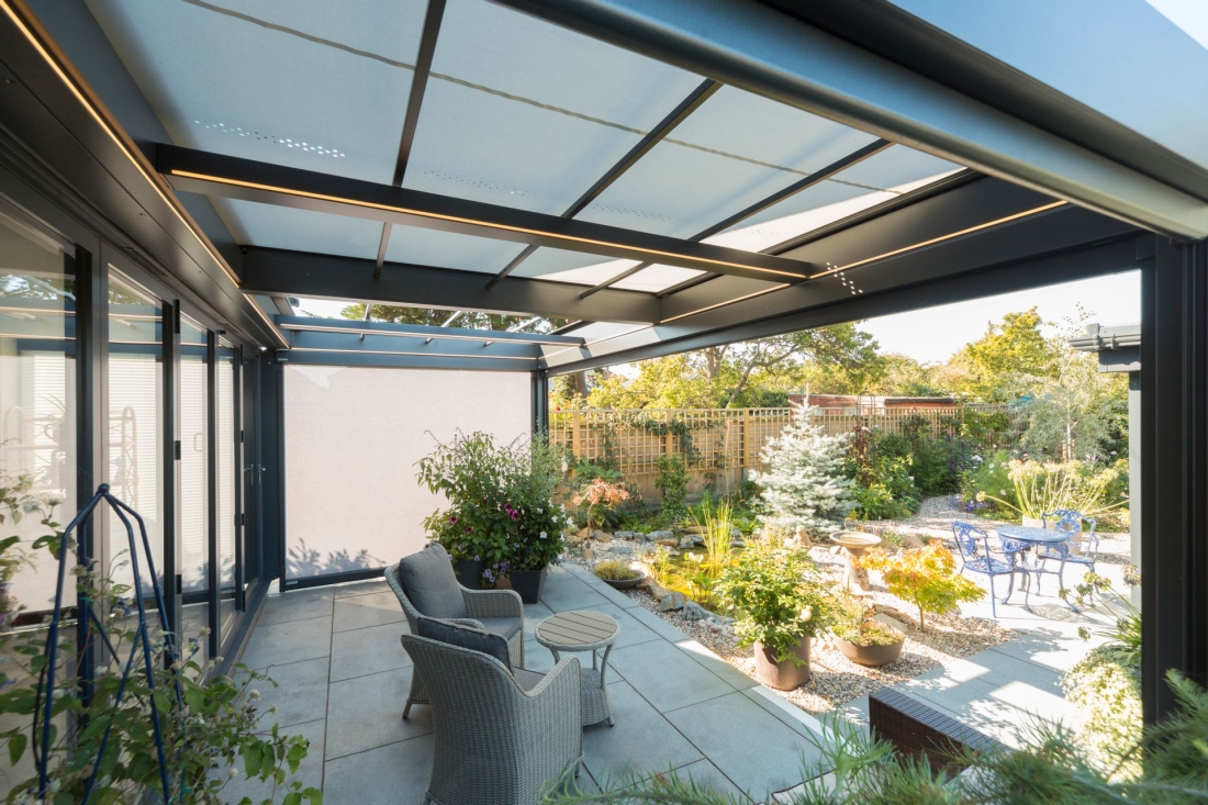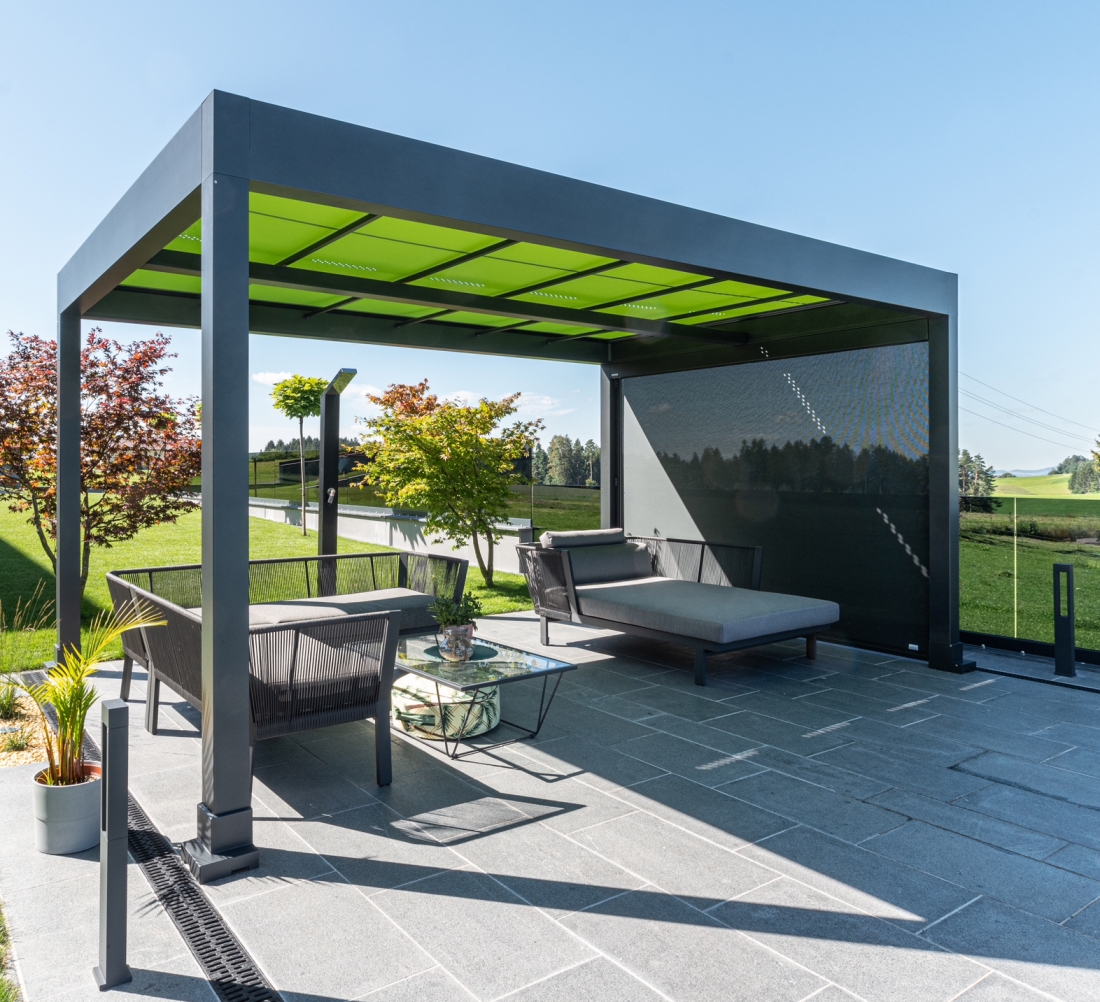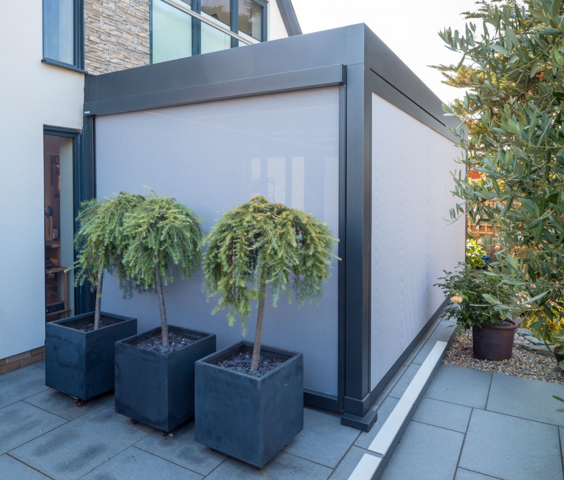 MARKILUX MARKANT è il complemento ideale per gli spazi esterni più raffinati. La risposta perfetta al desiderio di trascorrere tutto il tempo possibile all'aperto senza rinunciare alla protezione dalle intemperie, al confort e ad un'atmosfera rilassante. Un piacere di vivere ottimale sulla terrazza e nel giardino in tutte le stagioni, con sole o pioggia. In poche parole; una grande aggiunta alla qualità della vita, alla quale è possibile installare una illuminazione a LED perfetta sino ad arrivare al radiatore termico. L'acqua piovana defluisce attraverso aperture circolari predisposte e viene deviata attraverso i robusti montanti. Praticamente una stanza aggiuntiva al vostro spazio esterno, che è stata insignita dell'ICONIC AWARDS - INNOVATIVE ARCHITECTURE per l'architettura visionaria e la comunicazione sostenibile di questo prodotto.